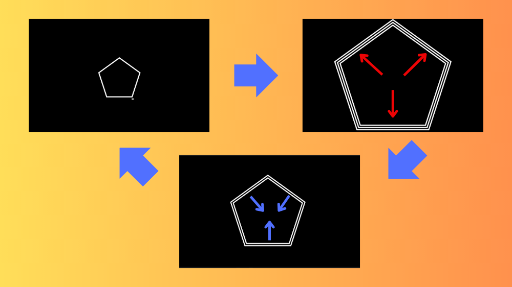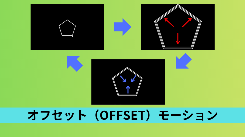 元々の図形の輪郭(パス)に対して「外へ押し出す(膨張)・内へ押し込む(収縮)・ズラす(移動)」のいずれかの動きの再現が、Aeにおけるオフセット(offset)です。