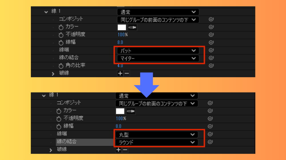 ✅線の先端:丸形キャップ(Round Cap)に変更