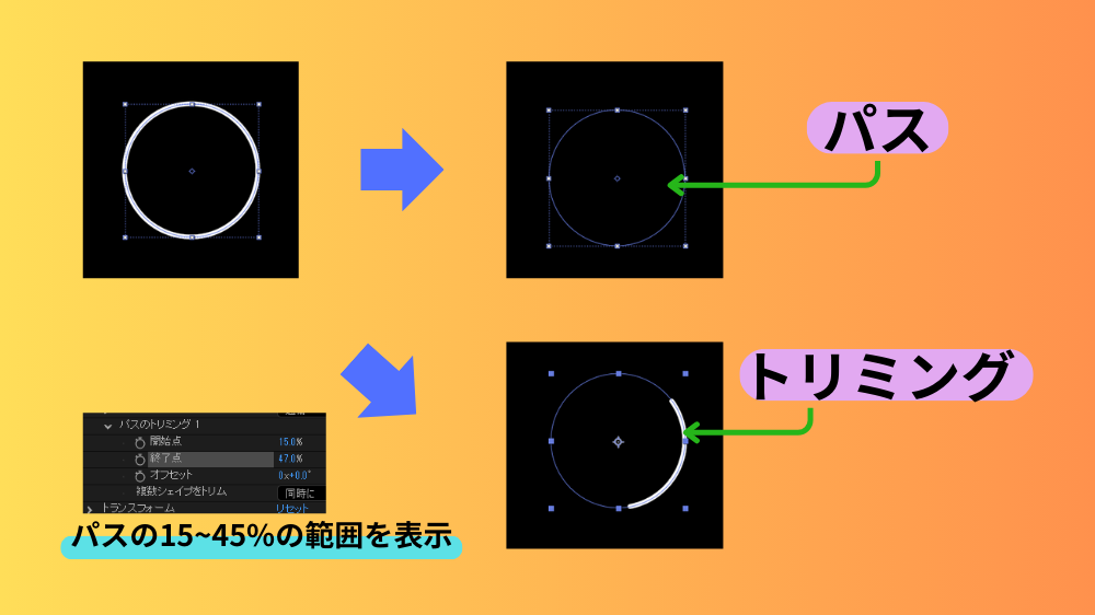 B.パスのトリミングを追加して、オフセットで動きをつける