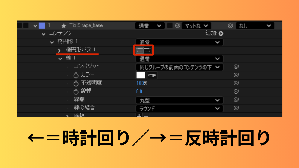 パスがどの方向に回転しているのかは、「図形のパス」の箇所で確認ができます。